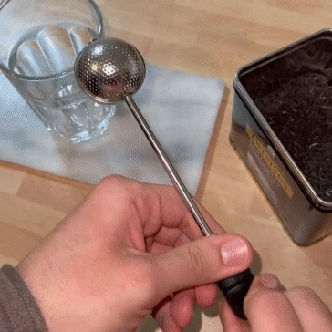 - Tauche das TwirlChef-Sieb in deine Teepackung und fülle die gewünschte Menge Tee ein.
