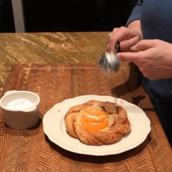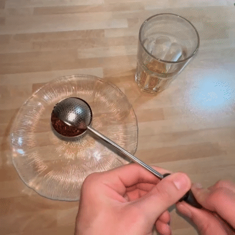 - Schließe das Sieb und halte es über das zu bestäubende Lebensmittel.