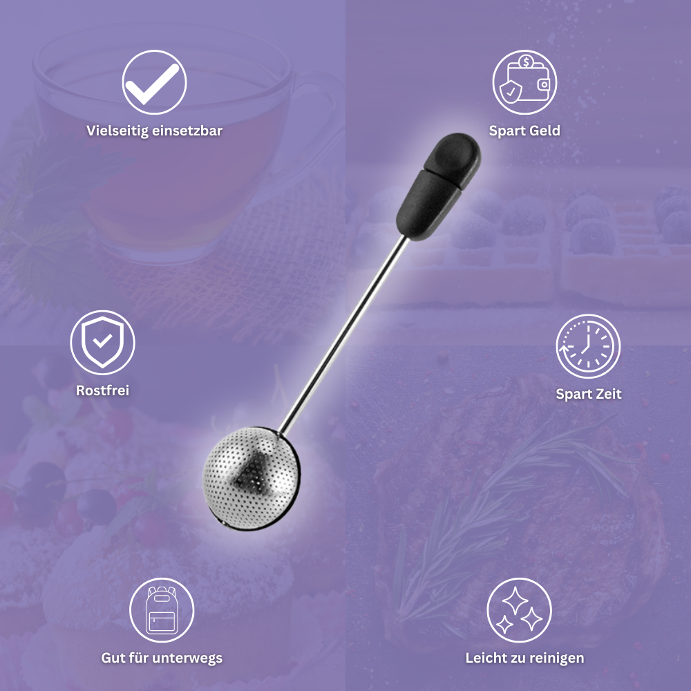 Der TwirlChef bietet die perfekte Lösung! Anders als herkömmliche Tee-Eier lässt er sich mühelos durch Drehen öffnen. Die glatte Metall-Oberfläche garantiert eine einfache Reinigung und bleibt auch bei hohen Temperaturen rostfrei und hygienisch!